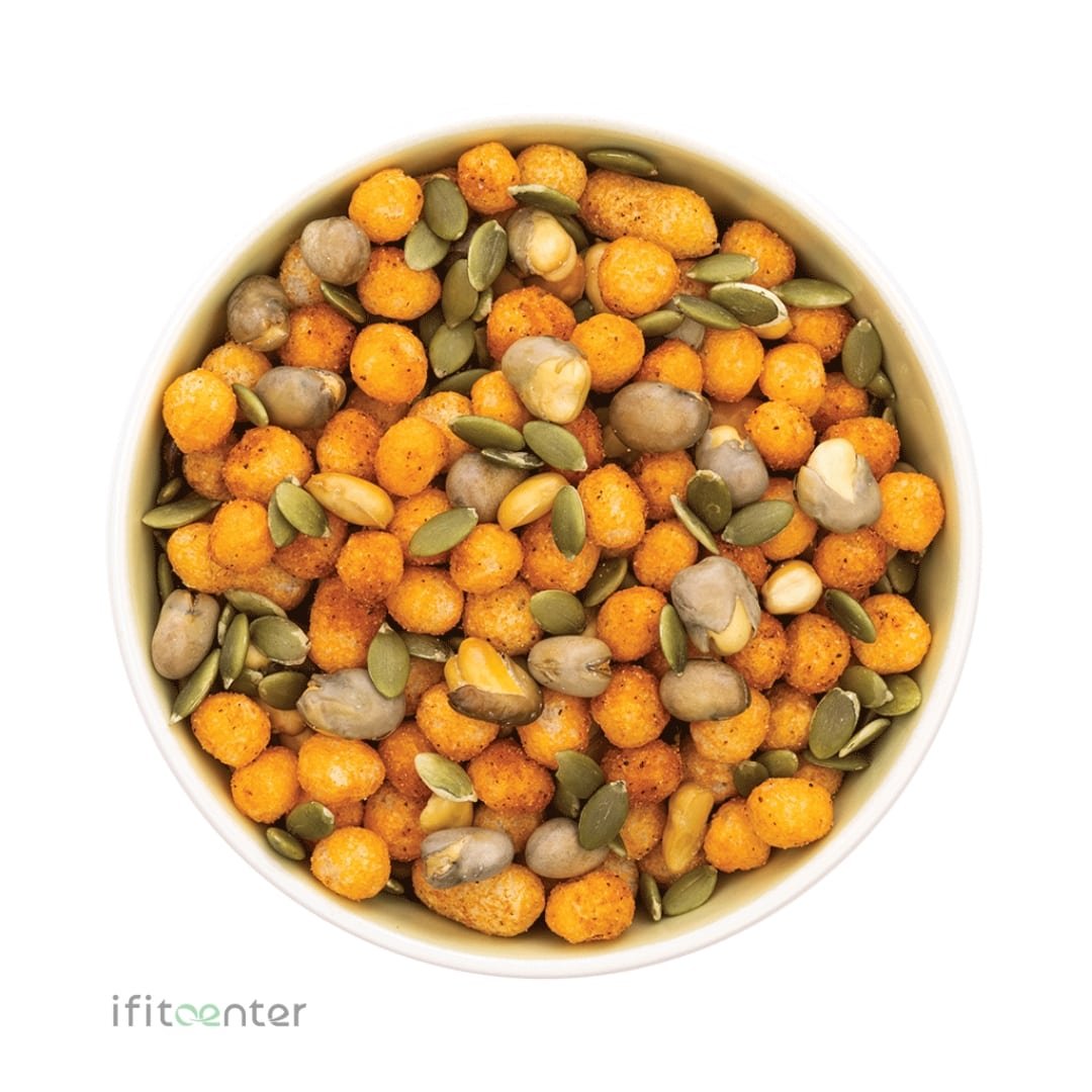 Our Trail Mix is thoughtfully formulated to offer a guilt-free snacking experience. At 190 calories per packet and only 1g of sugar, it provides a smarter alternative to traditional trail mixes. The impressive 4g of fiber per serving contributes to digestive health and prolonged fullness. The combination of pumpkin seeds, roasted fava beans, and BBQ flavored milk protein crisps ensures a diverse nutrient profile and a satisfying crunch. The blend of savory and slightly sweet flavors, enhanced with natural spices and seasonings, delivers a complex taste without excess calories. Unlike regular trail mixes, our balanced formula helps maintain steady energy levels without causing rapid blood sugar spikes, making it an ideal choice for a satisfying snack during hikes, workouts, or as a convenient on-the-go option that aligns with your dietary goals.